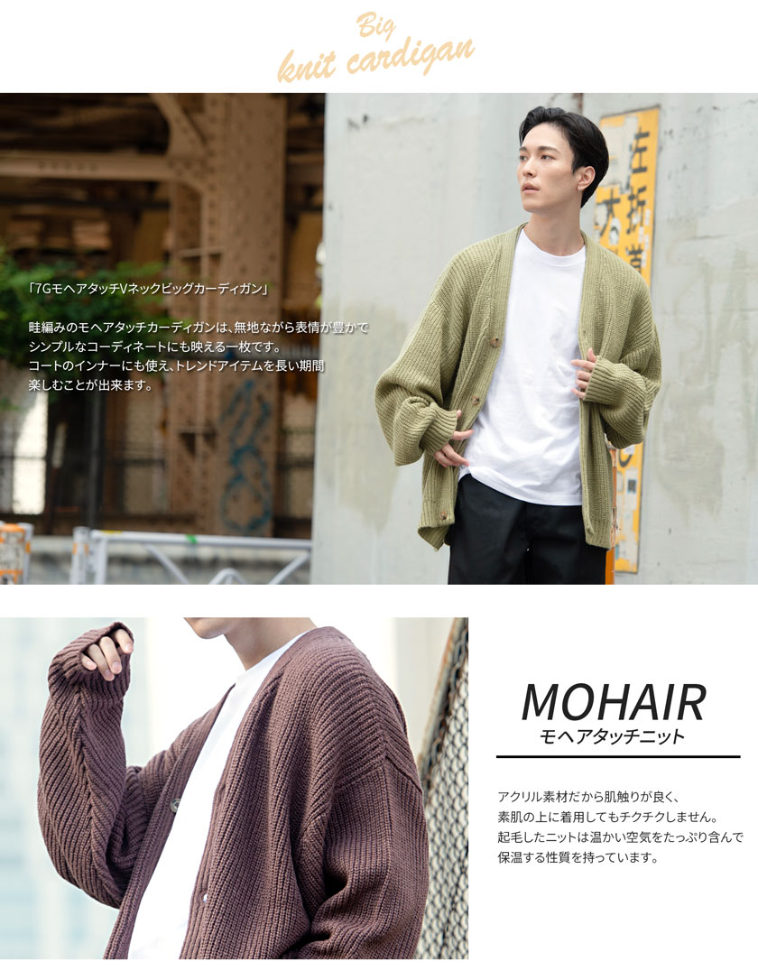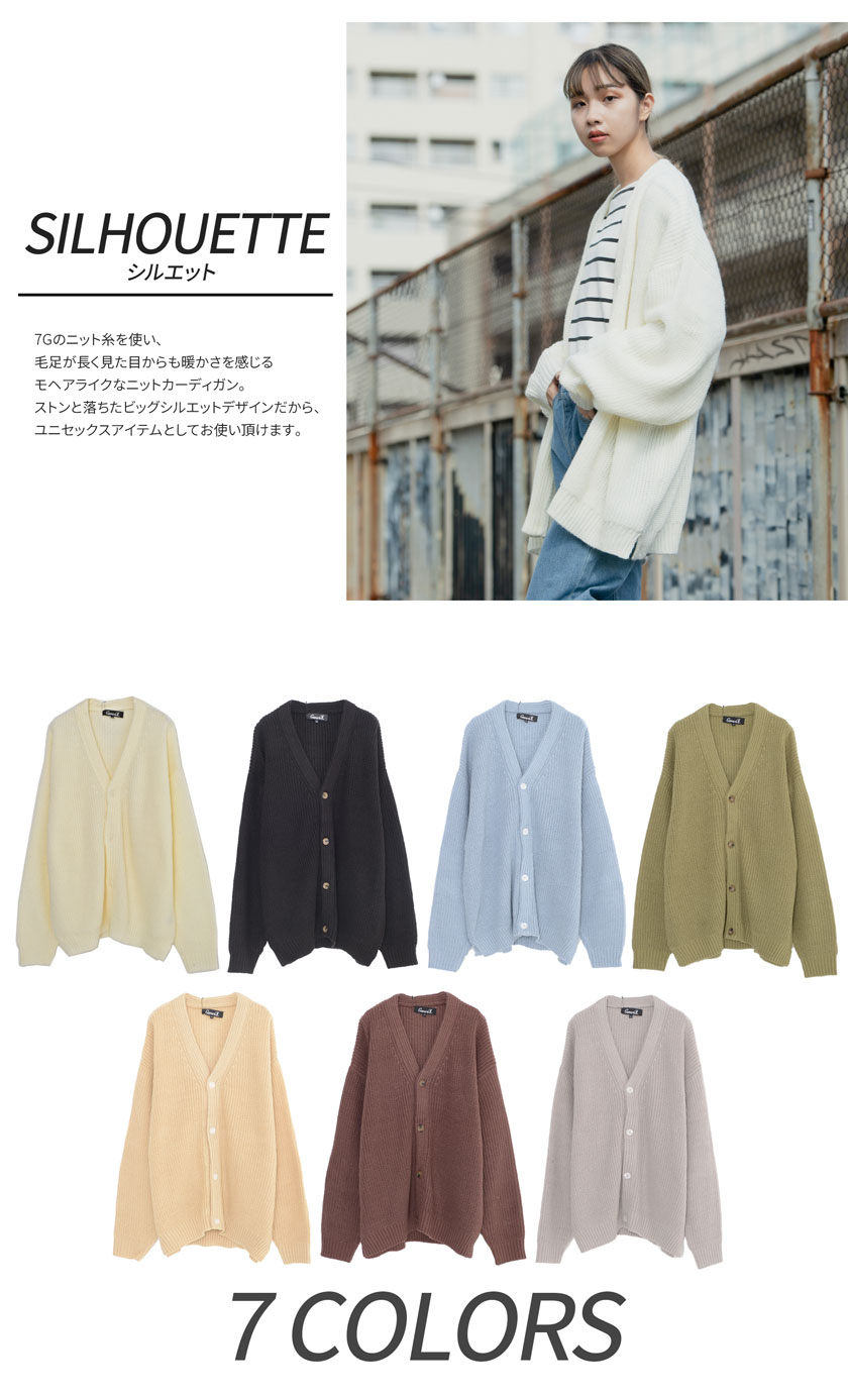 7Gのニット糸を使い毛足が長く見た目からも暖かさを感じるモヘアライクなニットカーディガン。