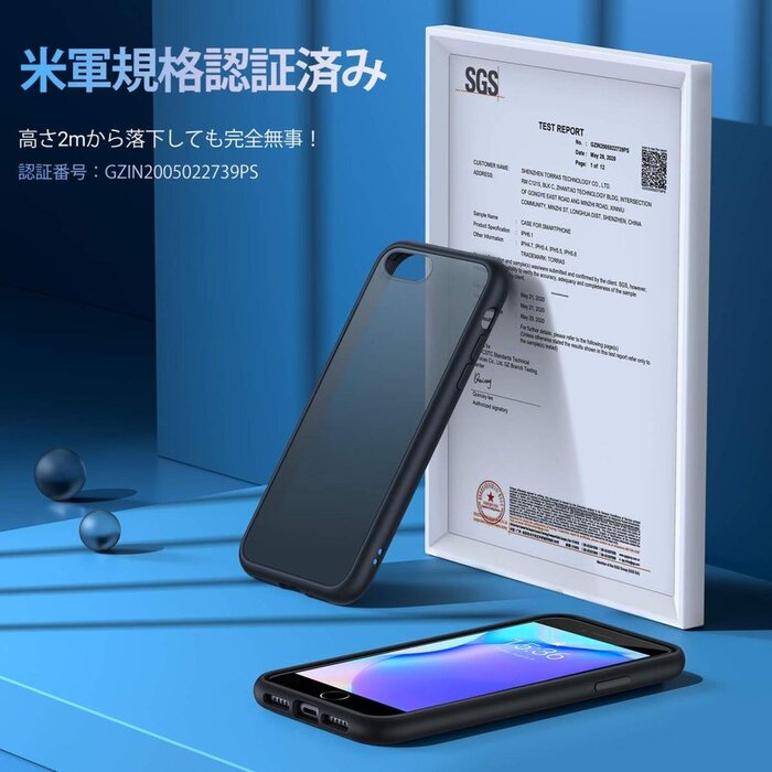 TORRAS iPhone SE 3 用 ケース 第3世代 iPhone SE2・8・7 用 ケース 半透明 耐衝撃 米軍MIL規格 マット感 黄ばみなし SGS認証 レンズ保護 ストラップホール付き iPhone SE2022 SE2 7 8 用カバー 4.7インチ ブラック 【米軍MIL規格・高耐衝撃性】 iPhoneSE用 ケース iPhone7/8ケース(4.7インチ用)米軍「MIL-STD-810G」規格(認証番号:GZIN2005022739PS)。