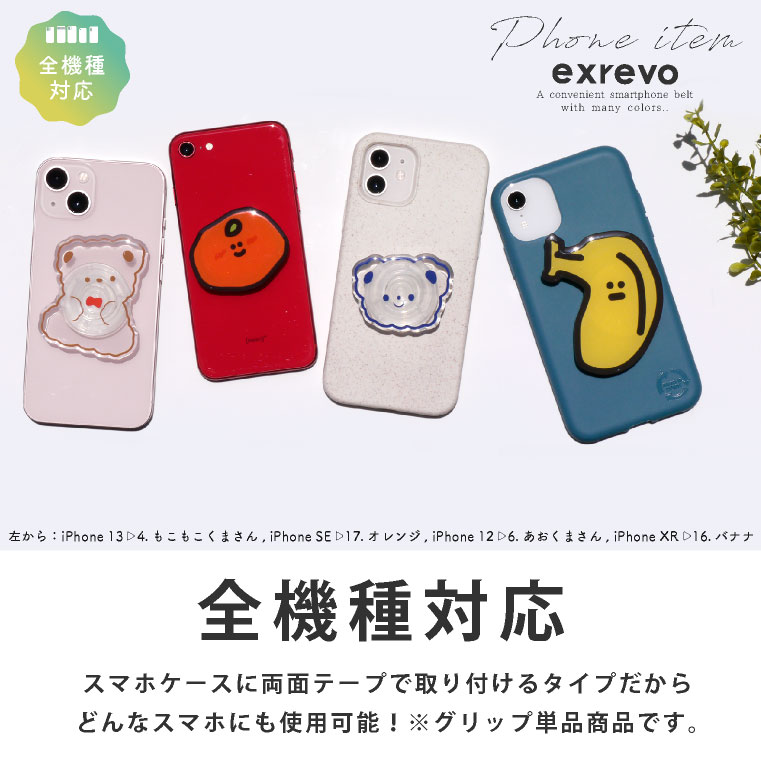 ▼カラー 1なまたまご 2あざらし 3おめめフラワー 4もこもこくまさん 5ちゃくまさん 6あおくまさん 7しろくまさん 8もこもこうさぎさん 9あかうさぎさん 10オーバーオールきょうりゅう 11おはなきょうりゅう 12アイスきょうりゅう 13かばんきょうりゅう 14ハンバーガー 15ポテト 16バナナ 17オレンジ ▼サイズ 全機種対応 タテ約42〜90mm ヨコ約50〜70mm ※サイズは種類によって変動します。