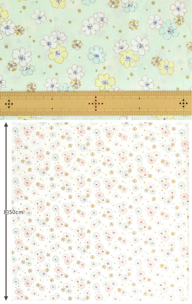 )〜 ラメ入り パステル ブロッサム 〜シーチング生地お花と水玉模様が散りばめられた手書き風の可憐な花柄生地。