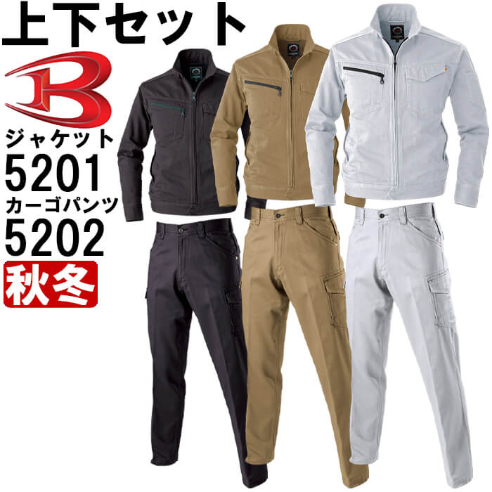 作業服 上下セット ジャケット 5201 M-3L & パワーカーゴパンツ 5202 S-3L 秋冬 バートル BURTLE 綿100% 作業着 メンズ 送料無料 送料無料
