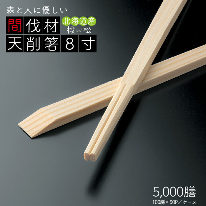 割り箸 間伐材 トド松 天削箸 8寸(21cm) 5000膳(100膳×50パック)/ケース 【業務用】【送料無料】